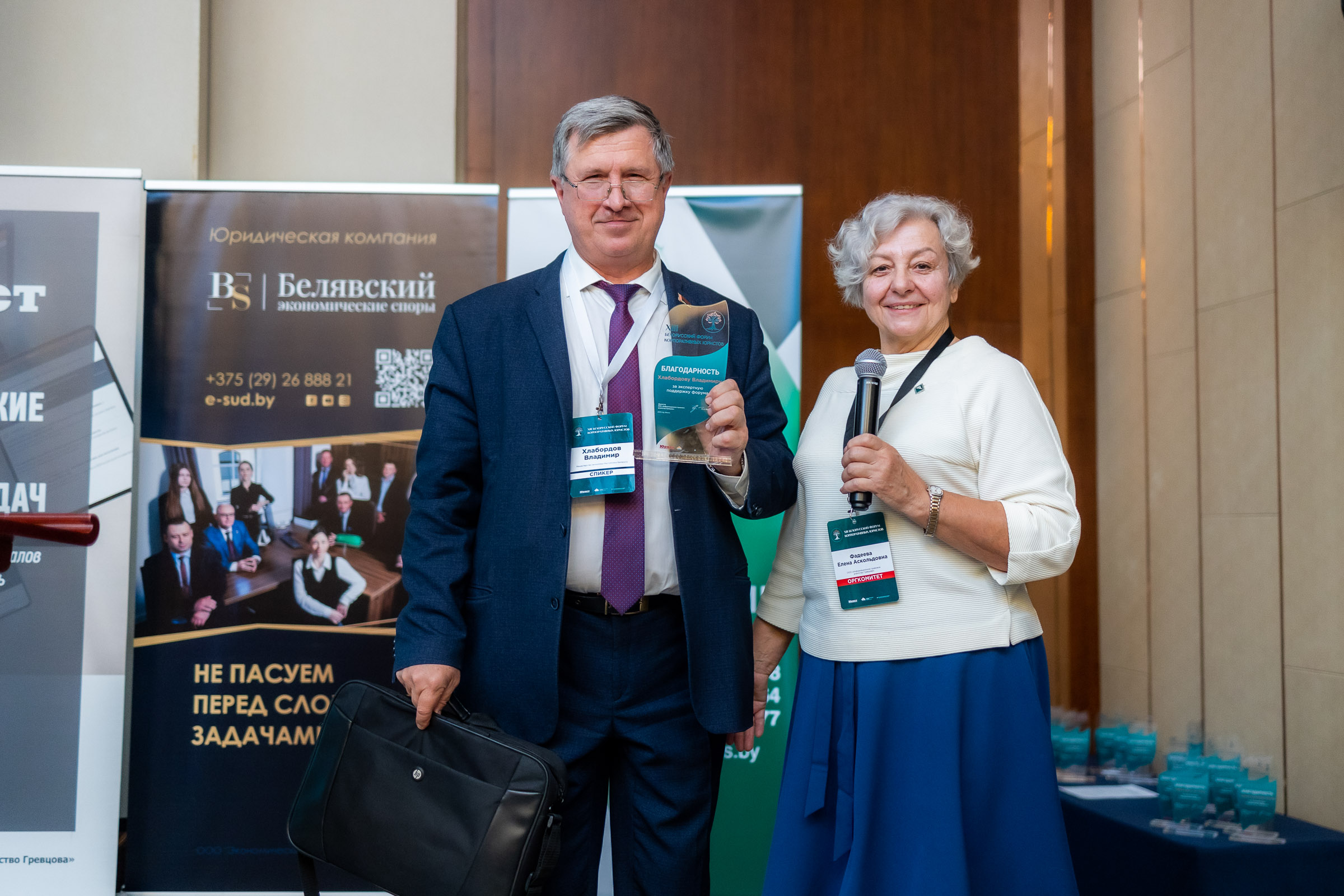Утро началось с живого диалога о том, что ждет бизнес в 2025–2026 гг. Владимир Хлабордов, начальник юридического управления Министерства экономики Республики Беларусь, нарисовал карту вызовов и возможностей, которые ждут юристов в ближайшем будущем, а Виталий Вабищевич, заместитель председателя Белорусской торгово-промышленной палаты, Арбитр Международного арбитражного суда при БелТПП, кандидат юридических наук, осветил неочевидные проблемы внешнеэкономической деятельности.