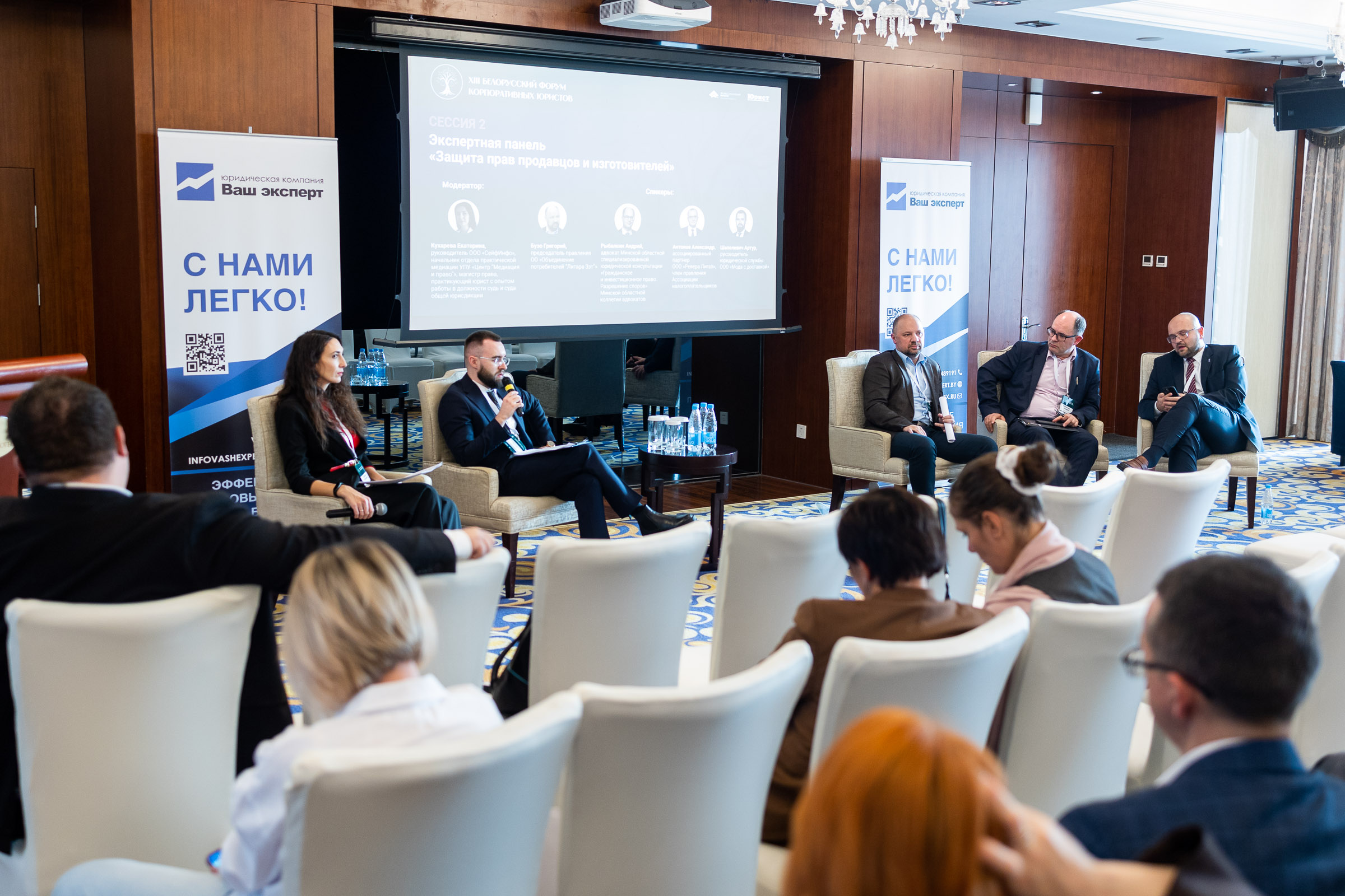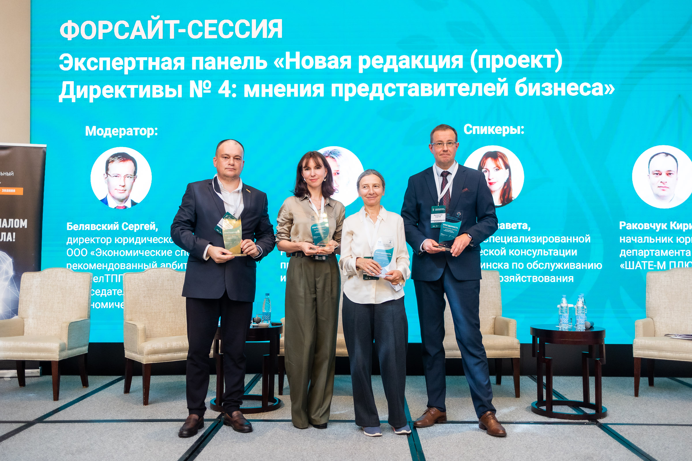 Затем участников ждали экспертные панели, где каждый мог задать вопрос и получить не шаблонный ответ, а практический совет. Сергей Белявский, директор юридической компании ООО «Экономические споры», медиатор, председатель Третейского суда «Экономические споры», рекомендованный арбитр МКАС «Палата арбитров при Союзе юристов», вел дискуссию о новой редакции Директивы № 4 так, что сложные правовые нормы оживали и превращались в конкретные инструменты для работы. Валентина Шундалова, заместитель председателя Республиканского союза промышленников и предпринимателей, Елизавета Ярмош, адвокат Специализированной юридической консультации № 1 г. Минска, Кирилл Раковчук, начальник юридического департамента компании «ШАТЕ-М ПЛЮС», спорили, соглашались и вместе искали оптимальные решения — именно так, как это происходит в реальной жизни.