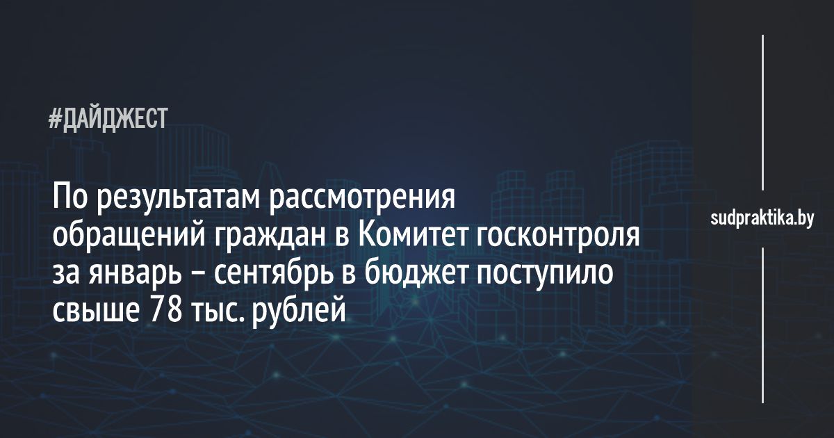По результатам рассмотрения обращений граждан в Комитет госконтроля за январь – сентябрь в бюджет поступило свыше 78 тыс. рублей