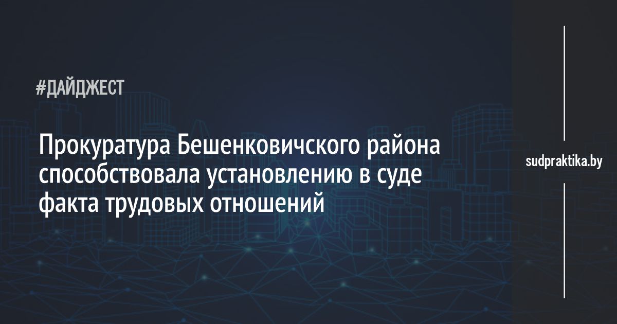 Прокуратура Бешенковичского района способствовала установлению в суде факта трудовых отношений