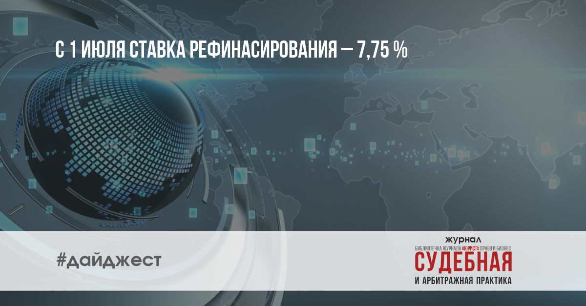 Ставка рефинансирования с 1 июля снижается с 8% до 7,75% годовых, ставка по кредиту овернайт - с 9% до 8,75% годовых, ставка по депозиту овернайт - с 7% до 6,75% годовых. Соответствующие решения приняты правлением Национального банка по итогам дополнительного заседания по денежно-кредитной политике 22 июня, сообщили БЕЛТА в управлении информации и общественных связей Нацбанка.
