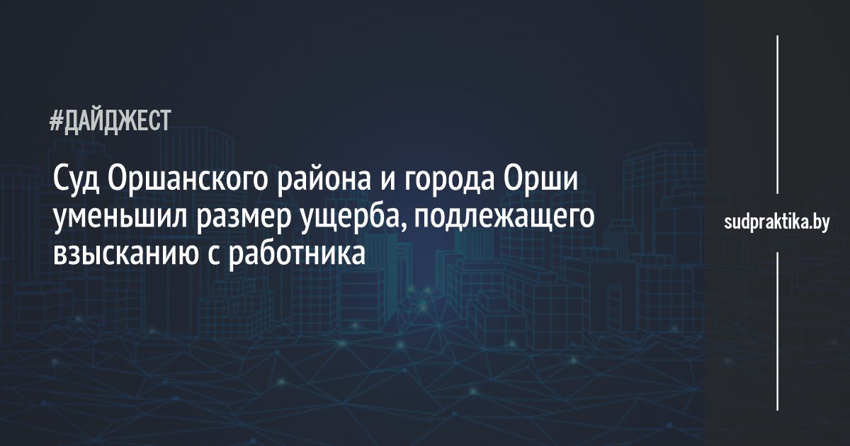 Суд Оршанского района и города Орши уменьшил размер ущерба, подлежащего взысканию с работника