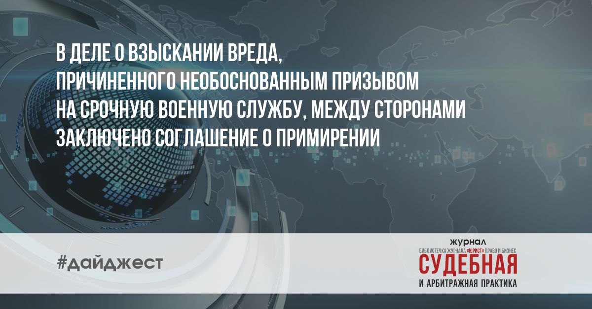 В деле о взыскании вреда, причиненного необоснованным призывом на срочную военную службу, между сторонами заключено соглашение о примирении