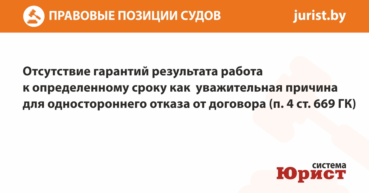 Отсутствие гарантий результата работы к определенному сроку как уважительная причина для одностороннего отказа от договора (п. 4 ст. 669 ГК)