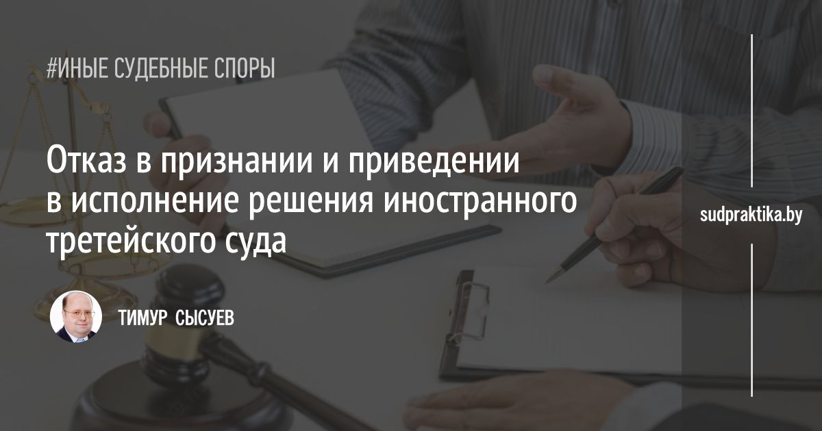 В признании и приведении в исполнение решения иностранного третейского суда отказано, поскольку содержащиеся в нем выводы противоречат выводам, содержащимся в судебных постановлениях по спорам между теми же сторонами, вынесенных белорусскими судами.