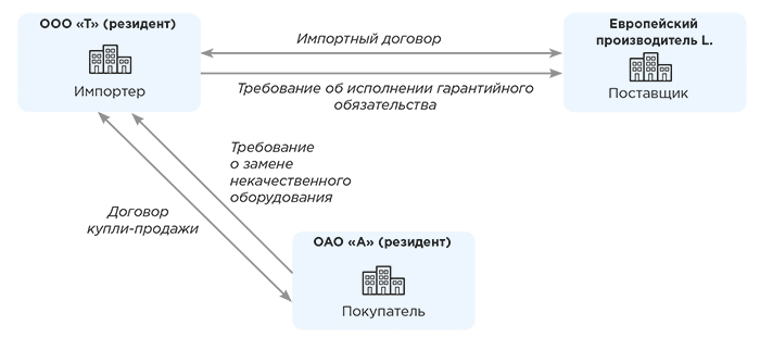 Импортер перепродал это оборудование белорусскому производственному предприятию ОАО «А» (резидент Республики Беларусь, далее — Покупатель), включив в договор условие о гарантийном обслуживании в соответствии с законодательством Республики Беларусь.