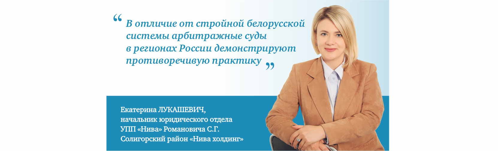 — В настоящее время юридическая служба холдинга — это юридический отдел УПП «Нива» (управляющей компании холдинга) численностью 8 человек. Юридический отдел оказывает юридические услуги как самой управляющей компании с ее филиалом, так и остальным 7 предприятиям — участникам холдинга.