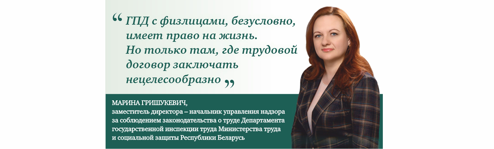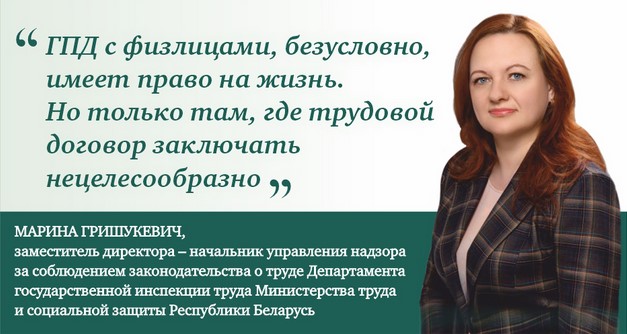 — Тогда возникает вопрос, насколько необходим сегодня ГПД между субъектами хозяйствования и физическими лицами. С одной стороны, новая редакция ГК, в частности ч. 3 п. 1 ст. 1 ГК, и сохранившая силу редакция Указа Президента Республики Беларусь от 06.07.2005 № 314 «О некоторых мерах по защите прав граждан, выполняющих работу по гражданско-правовым и трудовым договорам» дают основания полагать, что такие договоры продолжают оставаться законным элементом гражданского оборота. С другой стороны, ГПД находятся под постоянным вниманием контролирующих и надзорных органов, что вынуждает субъекты хозяйствования относиться к ним очень осторожно. Так есть ли смысл сохранить этот правовой институт в принципе?