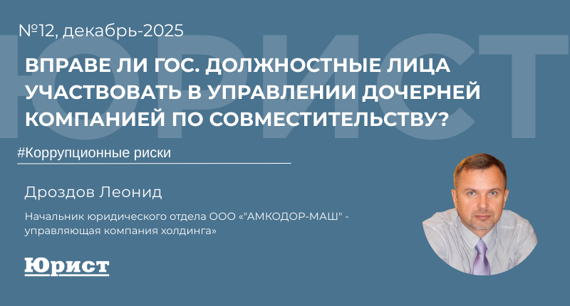 Вопрос: И. работает заместителем генерального директора промышленного холдинга с участием государства с 01.01.2025. С 01.11.2025 он назначен на должность генерального директора дочерней компании по совместительству. Не противоречит ли такое назначение законодательству о борьбе с коррупцией?